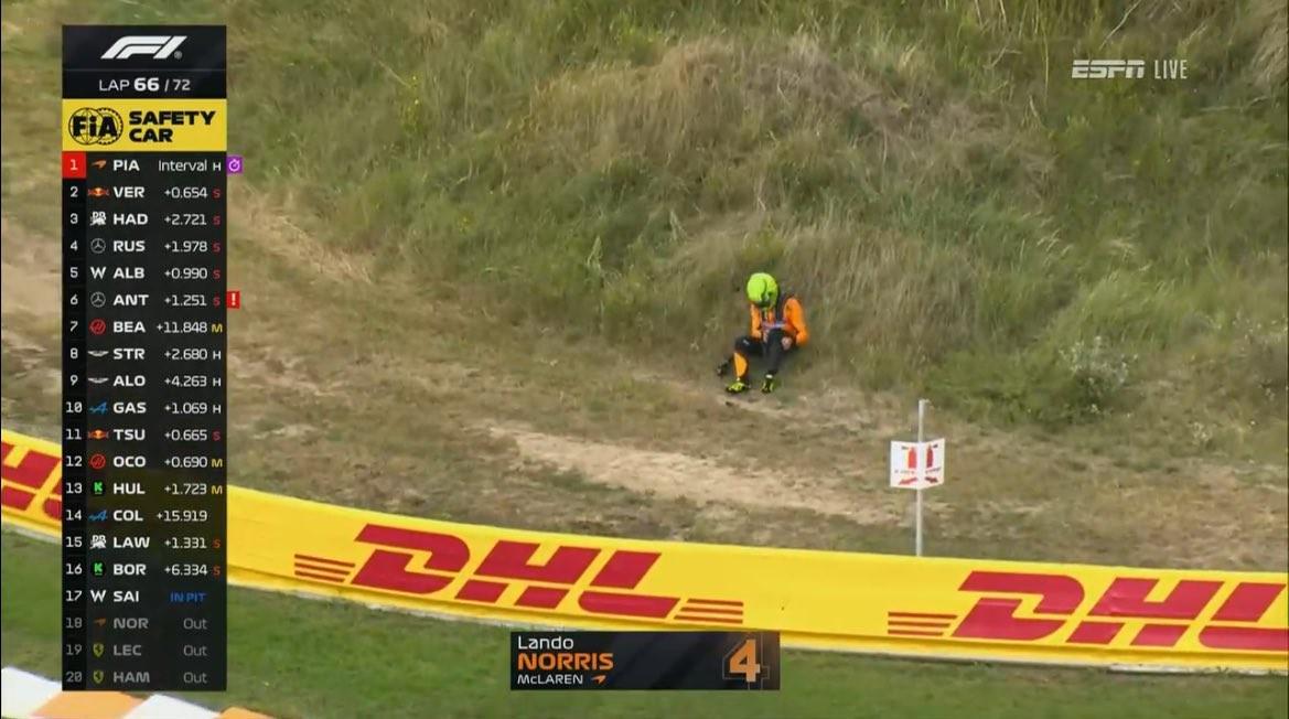 比赛第65圈,诺里斯赛车疑似发生燃油泄漏,在临近比赛结束时退赛。