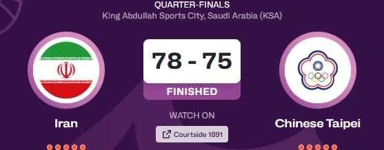 伊朗末节打出26-11,完成21分大逆转,晋级四强,下一场他们将对阵澳大利亚。